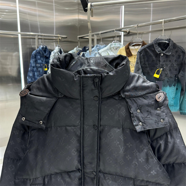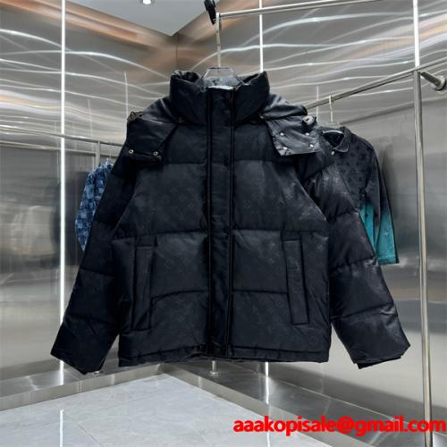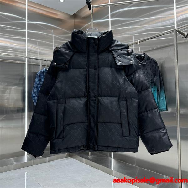ルイヴィトン 偽物 エレガント フード付き ダウンジャケット 着脱ショルダー仕様 LOUIS VUITTONショルダー部分の着脱デザインが特徴の高品質スーパーコピーアウターで、多様なスタイリングを可能にする機能性を持つこのLOUIS VUITTON コピー ブラックダウンジャケットは、モノグラムパターンが高級感を引き立て、保温性と軽やかさを両立。N級品の優良品質で、激安通販でも注目されるルイヴィトン 偽物として、冬のファッションに新しい可能性を提供します。