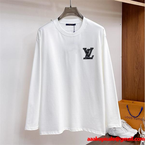ルイヴィトン コピー 上質シンプル ホワイト 長袖Tシャツ ブラックロゴ LOUIS VUITTON無駄を削ぎ落とした上質なデザインが魅力で、ミニマリズムと機能性を追求したこのLOUIS VUITTON コピー 長袖Tシャツは、胸元のブラックLVロゴがさりげなく存在感を放ち、柔らかなコットン素材が快適な着心地を実現します。N級品の繊細な仕立てで、激安通販でも注目されるルイヴィトン 偽物アイテムとして、シンプルながら奥行きのあるスタイルを提案します。