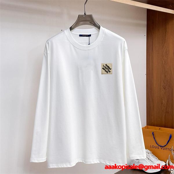 ルイヴィトン コピー モダンスタイル ホワイト 長袖Tシャツ LVスクエアパッチ LOUIS VUITTON胸元のスクエアパッチロゴがアクセントとなる一枚で、モダンな感性と実用性を両立させたこのLOUIS VUITTON コピー 長袖Tシャツは、シンプルながらも現代的なセンスを感じさせ、軽く柔らかな素材が快適な着用感を提供。N級品クラスの優良品質で、激安通販でも信頼のルイヴィトン 偽物アイテムとして、日常のさまざまなシーンで活躍します。