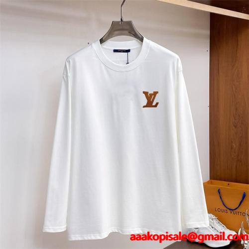 LOUIS VUITTON スーパーコピー クラシックテイスト 長袖Tシャツ ブラウンLVロゴ ルイヴィトン落ち着いたブラウンロゴが上品に映えるクラシカルなデザインで、伝統の美しさと現代の着心地を融合させたこのLOUIS VUITTON コピー 長袖トTシャツは、コットン100%の柔らかさで着心地抜群、N級品の確かな縫製技術が際立ちます。激安通販でも人気のルイヴィトン 偽物として、大人の余裕を感じさせ、長く愛用できる品質を備えています。
