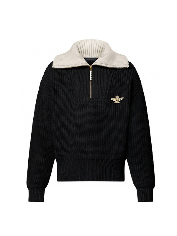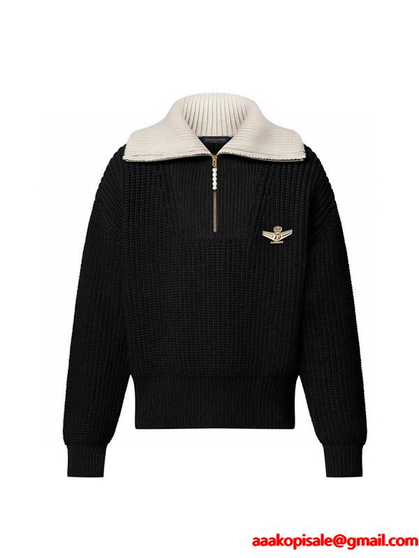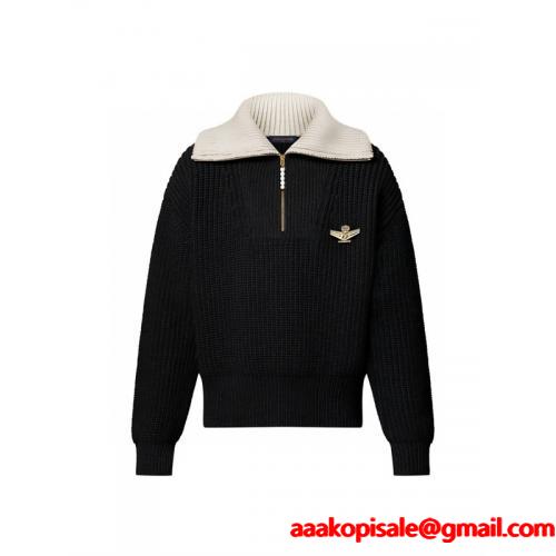 ルイヴィトン コピー ニット エレガント 重厚 ハーフジップ セーター メンズ LOUIS VUITTON立体感ある編み込みと大きな襟が特徴の高品質ハーフジップセーターであるLOUIS VUITTON コピー ニットは、クラシックなブラックトーンにゴールドのファスナーが映え、エレガントで重厚な印象を与えます。胸元のエンブレムがさりげなくブランドの上品さを際立たせ、どんなシーンでも洗練された雰囲気を演出。保温性と通気性に優れた素材を使用し、寒い季節でも快適な着心地。スーパー コピー 通販で人気のN級品。