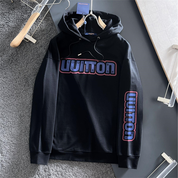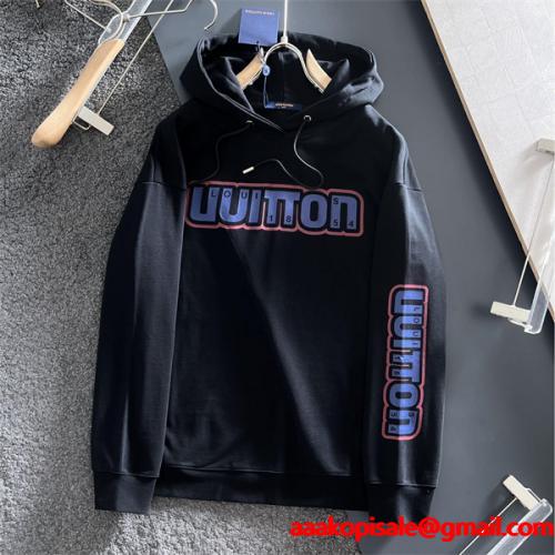 ルイヴィトン スーパーコピー パーカー クール レトロ ロゴプリント 長袖 フーディー LOUIS VUITTON高品質なコットン素材を採用し、柔らかく通気性のある着心地を実現したLOUIS VUITTON コピー パーカーは、フードのドローコードやリブ仕様の袖口など、細部まで丁寧に仕上げられています。クールなブラックをベースに、ブルーとパープルのコントラストがモダンなアクセントに。男女問わず着用できるユニセックスデザインで、デイリーにもストリートにも最適。スーパー コピー 通販でも人気のN級品質で、トレンド感と快適さを兼ね備えた一枚です。