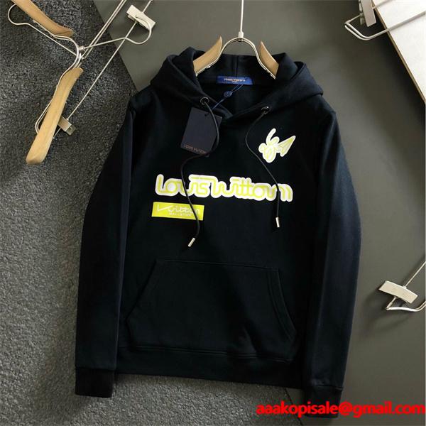 LOUIS VUITTON コピー フーディー ポップ スタイリッシュ グラフィック パーカー ルイヴィトンイエローのグラフィックロゴが鮮やかに映えるスタイリッシュなデザインのLOUIS VUITTON コピー パーカーは、柔らかな生地感と立体的なプリントが特徴で、軽やかで動きやすい着心地を提供。胸元のウィングマークが個性を引き立て、トレンド感を演出します。ポップで遊び心のある雰囲気ながら、ブランドらしい上品さを兼ね備えています。スーパー コピー 通販で高評価を得るN級品で、カジュアルコーデに程よいアクセントを加える人気アイテムです。