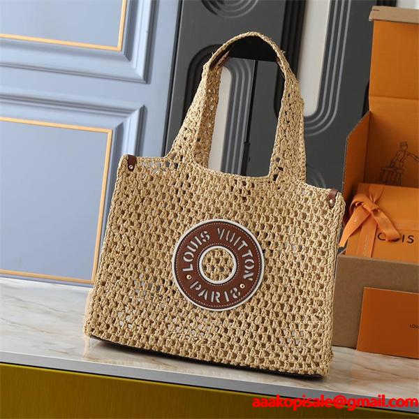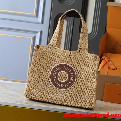 LOUIS VUITTON スーパーコピー ナチュラル 優雅 ラフィア トートバッグ ルイヴィトンルイヴィトン 偽物の中でも珍しいナチュラルテイストの高品質N級品であるLOUIS VUITTON コピー トートバッグは、軽やかなラフィア素材とブランドロゴのレザーパッチが上品に調和し、夏のお出かけやリゾートシーンにぴったり。スーパー コピー通販でも注目を集める激安ながら優良なデザインで、通気性がよく持ち心地も快適。自然素材の風合いが魅力的で、ルイヴィトンの上品さを日常に取り入れられるおすすめのアイテムです。