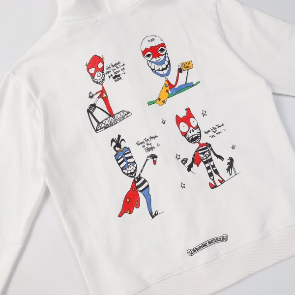 > メンズファッション > ジャケットパーカセーター > クロムハーツ スーパーコピー パーカー 可愛い 限定 キャラクター イラスト ホワイト CHROME HEARTS背面にユニークなキャラクターイラストをプリントしたクロムハーツの限定デザインであるCHROME HEARTS コピー パーカーは、遊び心あふれるアートスタイルで、カジュアルにもストリートにも映える一着です。高品質素材を使用し、柔らかく着心地も快適。スーパー コピーN級品の優良偽物として激安通販で人気上昇中。デザイン性の高さと細部の仕上げが際立つ、ファッション好き必見の注目パーカーです。