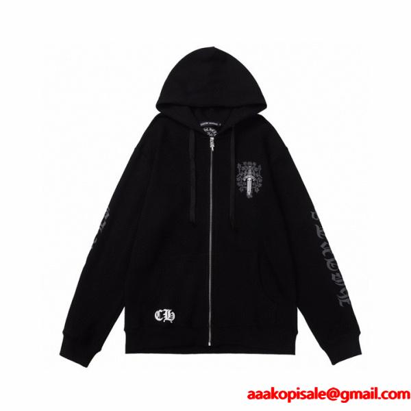 クロムハーツ コピー ジップパーカー 重厚 精巧 クロスエンブレム スリーブロゴ ブラック CHROME HEARTS胸元のクロスエンブレムと袖のロゴプリントが特徴的な重厚で精巧なデザインのCHROME HEARTS コピー ジップパーカーは、クロムハーツらしい迫力と職人技を再現した高品質仕上げです。スーパー コピーN級品の優良偽物として激安通販でも高評価。肌触りの良い素材を使用し、長時間の着用でも快適。CHROME HEARTSの魅力を存分に感じられる、ストリート映え抜群のジップパーカーです。