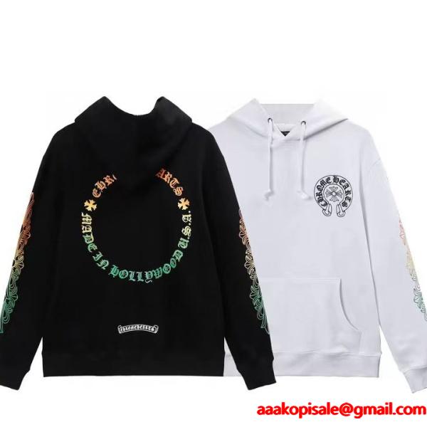 CHROME HEARTS スーパーコピー パーカー 鮮麗 多彩 レインボーロゴ ブラックホワイト クロムハーツレインボーカラーのロゴとスリーブデザインが印象的な鮮麗で多彩な一着であるCHROME HEARTS コピー パーカーは、ブラックとホワイトの2色展開で、どちらもクロムハーツらしい存在感を放ちます。高品質素材を使用したスーパー コピーN級品の優良偽物として激安通販でも注目を集めています。柔らかく動きやすい生地で快適な着心地を実現。CHROME HEARTSの洗練されたアート性とストリート感を融合した魅力的なパーカーです。