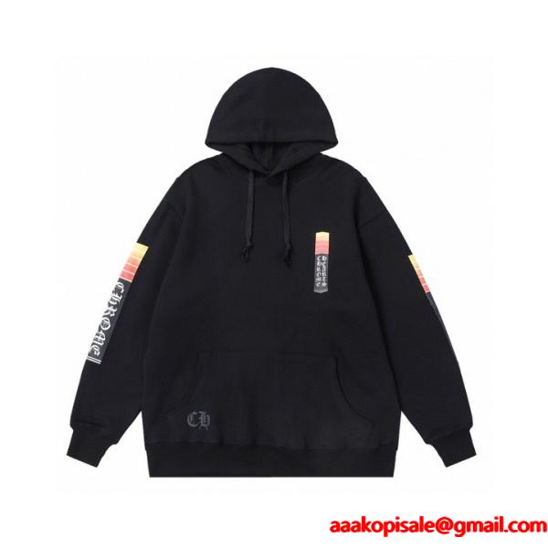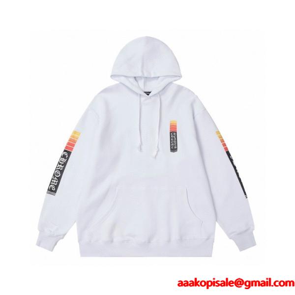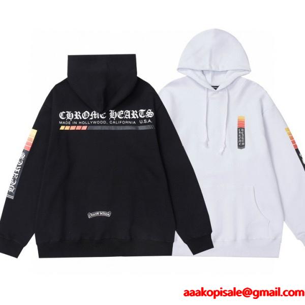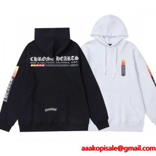 クロムハーツ 偽物 パーカー 斬新 洗練 グラデーションロゴ ブラックホワイト CHROME HEARTS背面にグラデーションカラーの「MADE IN HOLLYWOOD」ロゴを大胆に配した斬新で洗練されたデザインのCHROME HEARTS コピー パーカーは、ブラックとホワイトの2色があり、どちらも高品質なスーパー コピーN級品の優良偽物として激安通販で高評価。立体的なプリントと確かな縫製が特徴で、着るだけで都会的な印象を与えます。CHROME HEARTSの存在感を日常スタイルに取り入れることができる上質な一着です。