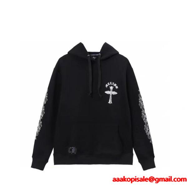 CHROME HEARTS スーパーコピー パーカー 気品 重厚 クロスロゴ ブラック トレンド クロムハーツ胸元にクロスモチーフを配した気品と重厚さを兼ね備えたデザインのCHROME HEARTS コピー パーカーは、袖にはアイコニックなクロスパターンが施され、クロムハーツらしい存在感を際立たせます。高品質素材を使用したスーパー コピーN級品の優良偽物として激安通販でも人気。快適な着心地と高い耐久性を両立。CHROME HEARTSの象徴的な美学を感じられる、スタイリッシュで上品な一着です。