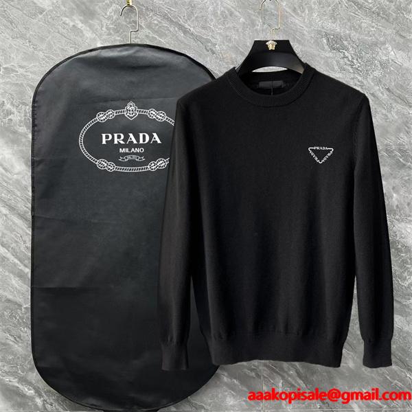 プラダ 偽物 ニット セーター ブラック エレガント スリム モダン スタイリッシュ PRADAプラダのモダンな美学を体現したスーパー コピー商品であるPRADA コピー ブラックニットセーターは、上質な素材を使用し、しなやかで肌触りの良い優良N級品。スリムなシルエットがスマートな印象を強調し、軽やかな着心地が魅力です。激安ながら高級感を失わず、細部まで丁寧に仕上げられています。プラダ 偽物とは思えない完成度で、洗練された大人の雰囲気を際立たせる逸品です。