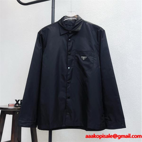 プラダ スーパーコピー ナイロンシャツ クール モード ラグジュアリー ブラック 光沢感 プラダクールでモードな印象とラグジュアリーな雰囲気を兼ね備えたスーパー コピー アイテムであるPRADA コピー ナイロンシャツは、プラダ 偽物 の特徴であるナイロン素材の艶やかな質感を忠実に再現し、高品質で優良な仕上がりを実現。軽量で通気性が良く、N級品として激安ながら高級感を漂わせます。胸元のトライアングルロゴがアクセントとなり、シンプルな中に存在感をプラス。通販でも人気の高いPRADA コピー ナイロンシャツは、都会的でスマートな大人のスタイルを完成させる一着です。