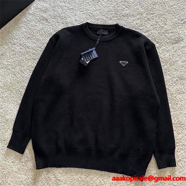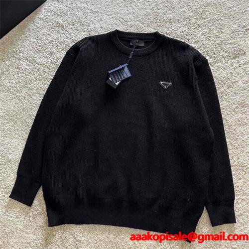 プラダ スーパーコピー ニットセーター シック エレガント シンプル ブラック N級品 PRADAシックでエレガントな雰囲気を持つスーパー コピー ファッションアイテムであるPRADA コピー ニットセーターは、プラダ 偽物 の上質なスタイルを再現し、高品質なウール混素材で柔らかく優良な着心地を実現。N級品クラスの精密な仕立てで、激安ながらも高級感を感じさせます。胸元のトライアングルロゴがワンポイントとなり、シンプルな中にも存在感をプラス。通販でも人気のPRADA コピー ニットセーターは、秋冬の大人カジュアルに欠かせない上品な一着です。