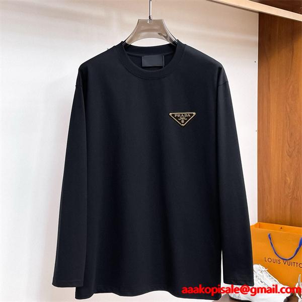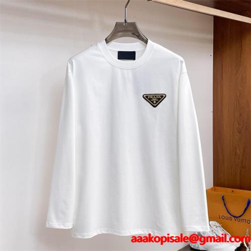 プラダ スーパーコピー 長袖Tシャツ ホワイト 大きめロゴ 高級感漂う トップス PRADAファッション愛好家の間で注目される人気のスーパー コピー モデルであるPRADA コピー 長袖Tシャツ メンズ ホワイト 大ロゴデザインは、胸元の大きなプラダ 偽物 トライアングルロゴが印象的で、シンプルながらも存在感のある仕上がり。高品質な素材を使用し、縫製やディテールにもこだわった優良なアイテムです。N級品レベルの精巧なデザインで、本物と見分けがつかないほどの完成度を実現。激安通販で購入可能ながら、プラダらしい高級感と洗練されたスタイルを楽しめます。