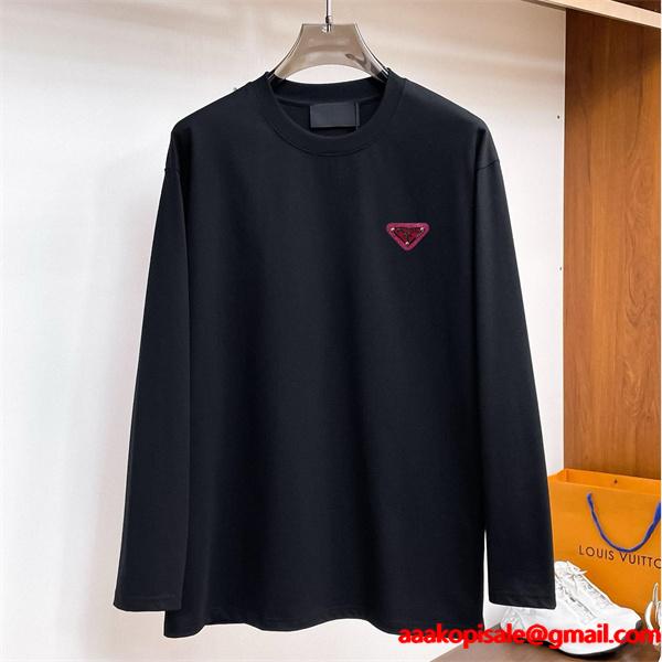 プラダ スーパーコピー 長袖Tシャツ ブラックエンブレム クラシック デザイン PRADA胸元に配置されたブラックエンブレムが上品に際立つクラシックなデザインのPRADA コピー 長袖Tシャツは、高品質コットン素材を使用し、柔らかく通気性に優れた快適な着心地を提供します。プラダ 偽物 長袖Tシャツの中でもN級品として高評価を得ており、スーパー コピー 通販で激安ながら優良な仕上がりが魅力。落ち着いた印象の中にさりげない高級感を漂わせ、どんなスタイルにもマッチ。季節を問わず着こなせる万能な一着です。