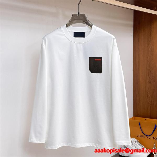 PRADA コピー 長袖Tシャツ ポケットデザイン レッドライン カジュアル プラダ胸元のポケットとレッドラインがアクセントとなるカジュアルなデザインが特徴のPRADA コピー 長袖Tシャツは、柔らかく丈夫な素材を使用し、上質な着心地を追求したプラダ 偽物 長袖TシャツのN級品。スーパー コピー 通販でも激安優良モデルとして高評価を得ています。シンプルな中に程よい個性を感じさせるデザインで、デイリーにもお出かけにも最適。上品さとカジュアルさを兼ね備え、あらゆる場面で活躍できる万能な一枚です。