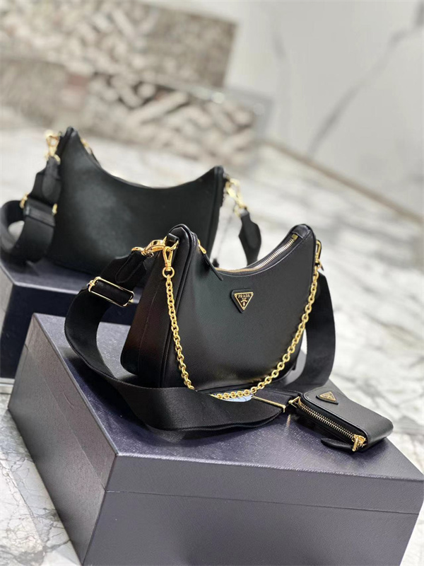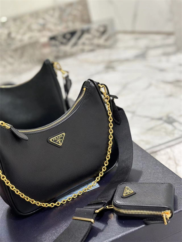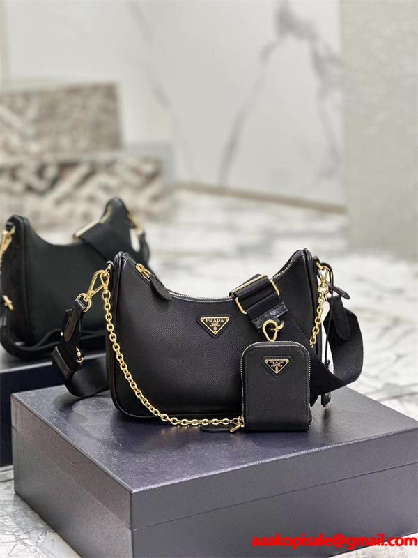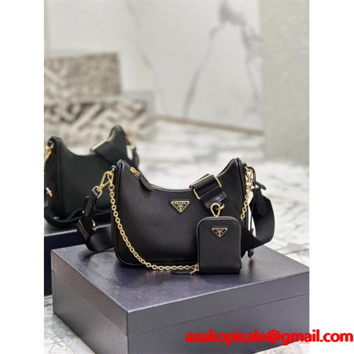 PRADA コピー Re-Edition 2005 サフィアーノレザー バッグ 1BH204 ブラック ゴールドチェーン付き 洗練されたショルダーバッグ▼INFORMATION▼ | ||
