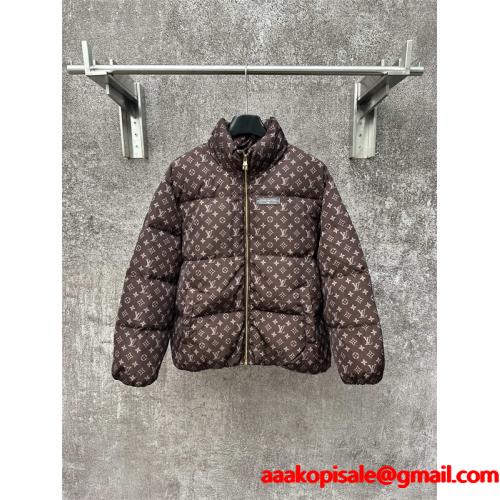ルイヴィトン Louis Vuitton 激安 ダウンジャケット メンズ レディース モノグラム 総柄 ロゴ ジップアップ ブラウン 秋冬新作 保温 防寒 アウター高級感あふれるルイヴィトン Louis Vuitton 激安 ダウンジャケット。上質なポリエステルとナイロン素材を使用し、軽量で柔らかく、保温性と通気性に優れています。90%ダウン・10%フェザーの中綿で暖かさをしっかりキープ。ブランドを象徴するモノグラム総柄デザインが存在感を放ち、カジュアルにもラグジュアリーにも合わせやすい一着。男女兼用で、秋冬の防寒コーデに最適です。