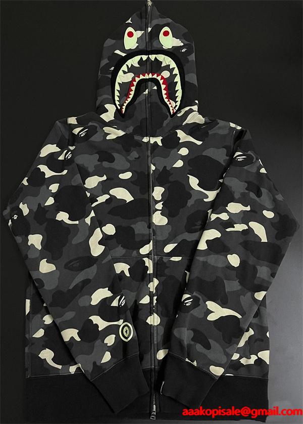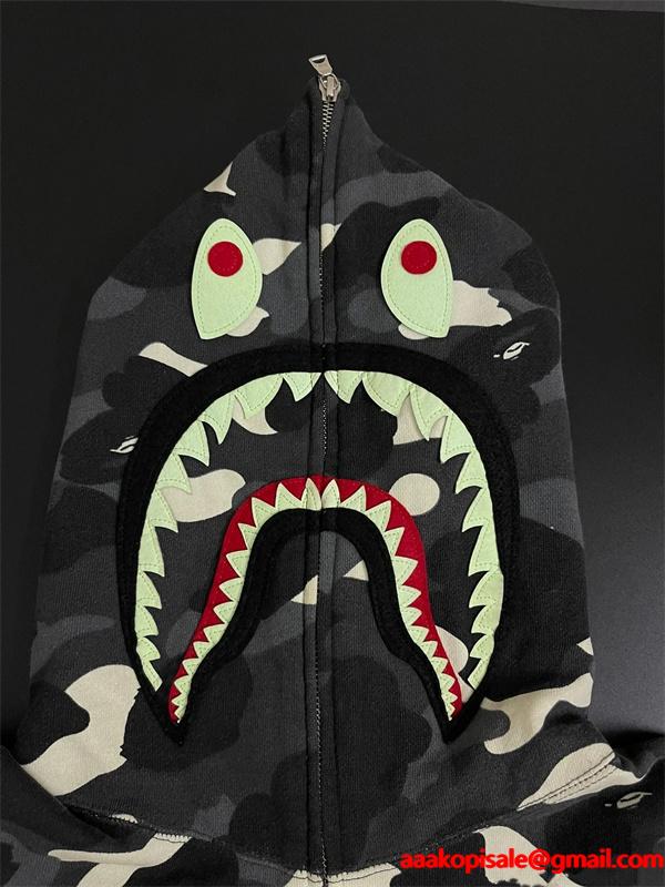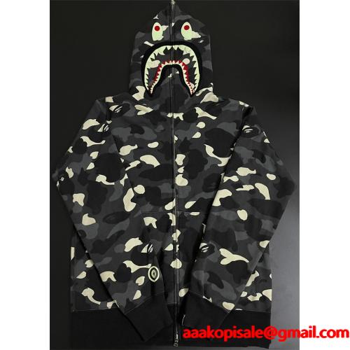 A BATHING APE コピー 激安 BAPE シャークパーカー Shark Full Zip Hoodie メンズ カモフラ 迷彩 ブラック ストリートファッション 人気アイテム▼INFORMATION▼ | ||