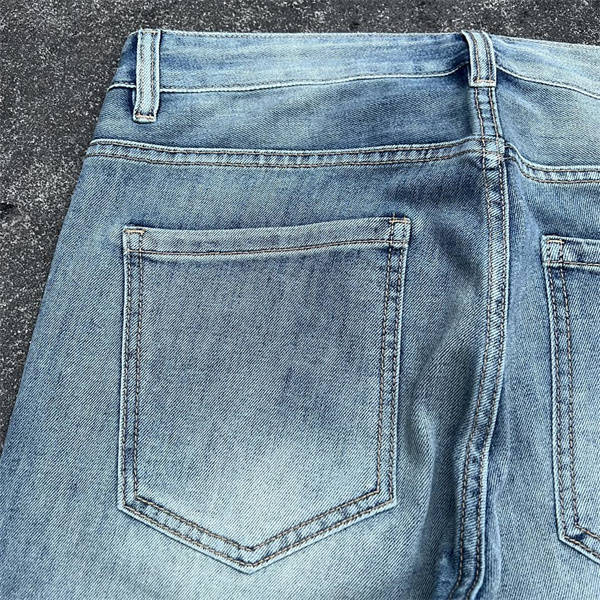 上質なデニム素材を使用した、軽やかで快適な履き心地の一本です。絶妙なウォッシュ加工により、自然な色落ちとヴィンテージ感を演出。カジュアルながらも洗練された印象を与えます。