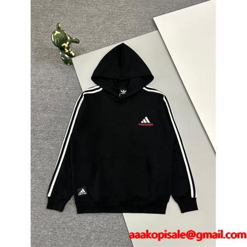 BALENCIAGA コピー 激安 バレンシアガ コラボ風 ロゴフーディ パーカー メンズ レディース兼用 ブラック スポーツ カジュアル ストリート 長袖 トップスBALENCIAGA(バレンシアガ)激安 コラボ風ロゴフーディ。