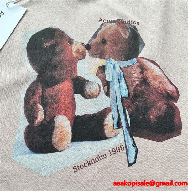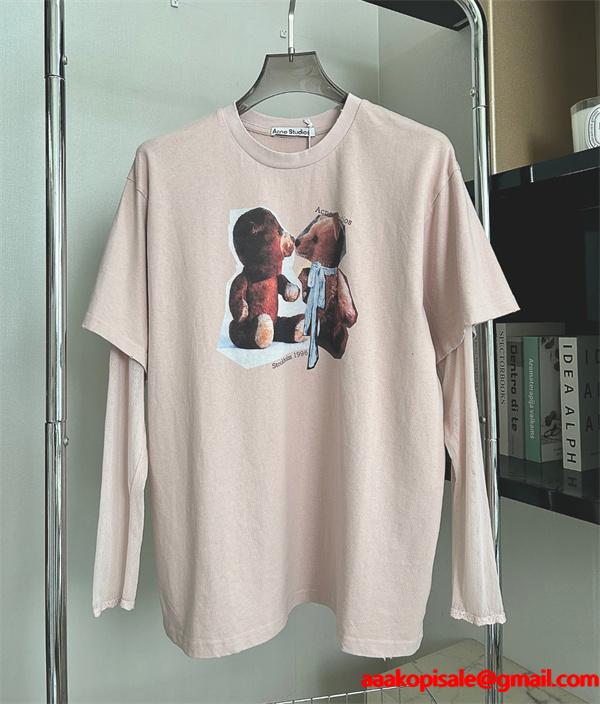 Acne Studios コピー 激安 アクネステュディオズ テディベアプリント ロングスリーブTシャツ メンズ レディース兼用 長袖 カジュアル トップス 春秋新作 かわいいAcne Studios(アクネステュディオズ)激安 テディベアプリント ロングスリーブTシャツ。
