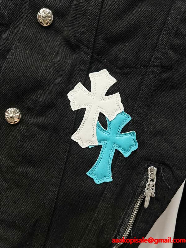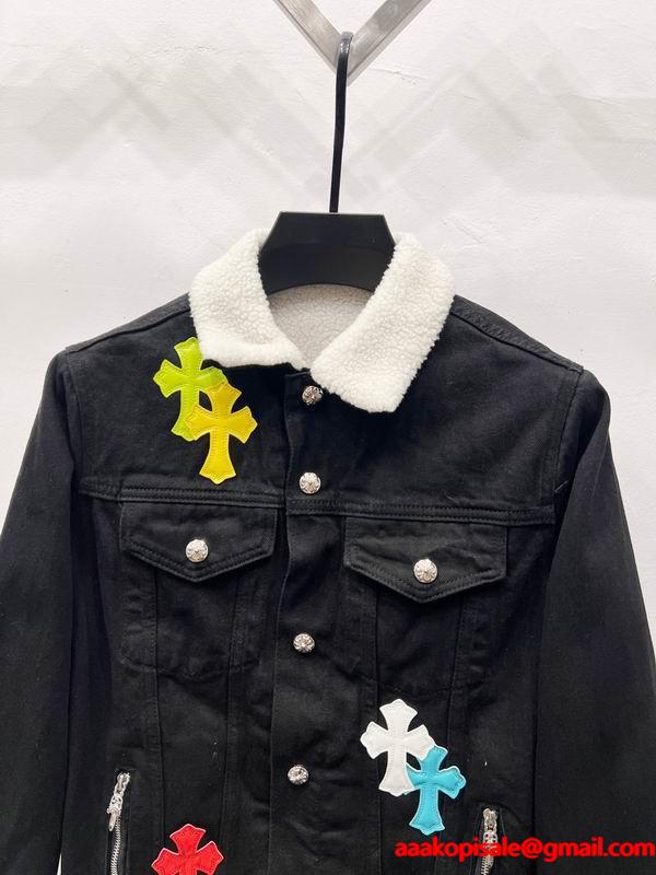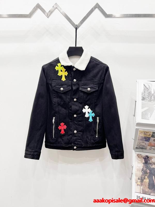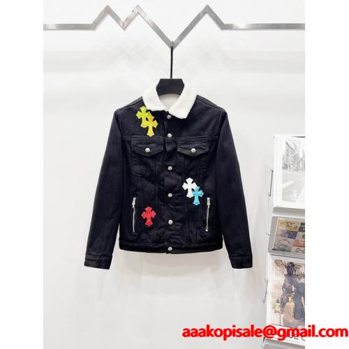 > メンズファッション > ダウンジャケット > クロムハーツ スーパーコピー 高級 洗練 デニムジャケット クロスパッチ ボア襟 CHROME HEARTSデニムジャケットは、ボア襟とカラフルなクロスパッチが際立つ洗練されたデザイン。クロムハーツ 偽物 ジャケットとしてスーパー コピー 品の中でも優良な仕上がりで、N級品ならではの高級感を誇ります。ブラックデニムの上に映えるクロスデザインが特徴的で、ストリート感と上品さを兼ね備えています。保温性と耐久性にも優れ、秋冬に最適。激安通販でも人気を集める高品質モデルで、存在感のある一着として幅広いコーデに活用できます。