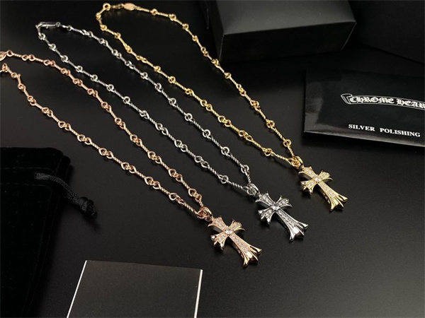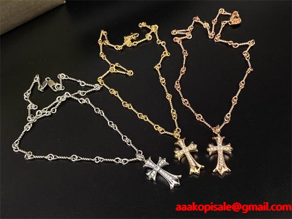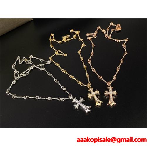 CHROME HEARTS スーパーコピー 華麗 上品 ネックレス ゴールド&ローズクロス クロムハーツシルバーネックレスは、シルバー・ゴールド・ローズゴールドの3色展開で、華麗さと上品さを兼ね備えたデザインが特徴。クロムハーツ 偽物 ネックレスとしてスーパー コピー 品ながらも、精緻なクロス装飾と高級感ある輝きを再現したN級品です。激安通販でも高評価を集め、男女問わずファッションに取り入れやすい万能アクセサリー。重厚感と繊細さを両立し、日常から特別な場まで幅広く活躍する高品質な逸品です。