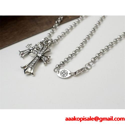 クロムハーツ コピー 洗練 優美 シルバーネックレス クロスチャーム ラインストーン CHROME HEARTSネックレスは、ラインストーンが輝くクロスチャームが印象的な洗練されたデザイン。クロムハーツ 偽物 ネックレスとしてスーパー コピー 品ながらも、N級品の高品質シルバーを使用し、優美な輝きを放ちます。丁寧な造形と精緻な細工が特徴で、さりげない上品さと存在感を両立。激安通販でも人気が高く、ファッションにアクセントを加える理想的なアイテム。日常使いから特別なシーンまで対応できる万能アクセサリーです。