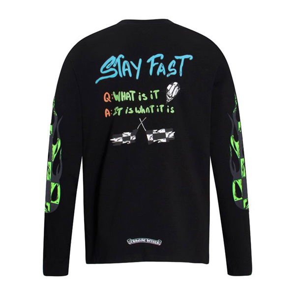 > メンズファッション > 長袖Tシャツ > CHROME HEARTS コピー アクティブグラフィック ブラック長袖Tシャツ STAY FASTロゴデザイン クロムハーツ長袖Tシャツは、フロントとバックに施された「STAY FAST」メッセージが際立つデザイン。クロムハーツ 偽物 長袖Tシャツながら、スーパー コピー 品の中でもN級品と呼ばれるほどの完成度。軽量かつ耐久性のある素材を使用し、スポーティかつアートフルな印象を演出します。ストリートやカジュアルスタイルにもマッチし、激安通販でも人気急上昇中のクロムハーツ コピー 長袖Tシャツです。