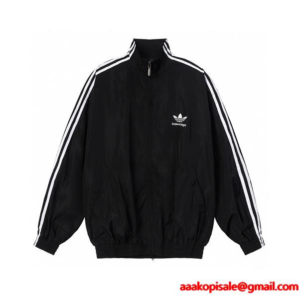 > メンズファッション > ジャケットパーカセーター > BALENCIAGA スーパーコピー トラックジャケット ブラック スポーツライン 三本ストライプ ロゴ入り バレンシアガウィンドブレーカーは、胸元の大胆なロゴプリントが印象的な高品質スーパー コピー商品です。BALENCIAGA コピー ウィンドブレーカーとして軽量で通気性の良いナイロン素材を使用し、N級品クラスの優良な仕上がり。バレンシアガ 偽物とは思えない完成度で、日常のカジュアルスタイルからスポーティーコーデまで幅広く対応します。激安通販でも注目の人気アイテムで、シンプルながら存在感のあるデザインが魅力。軽快で都会的なスタイルを演出します。